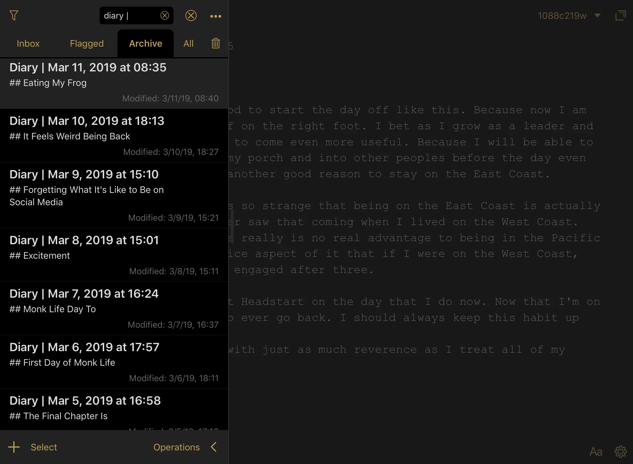 Using the Drafts app, I can dictate all of my journal entries (which is why you can see some spelling errors in the image above.)
