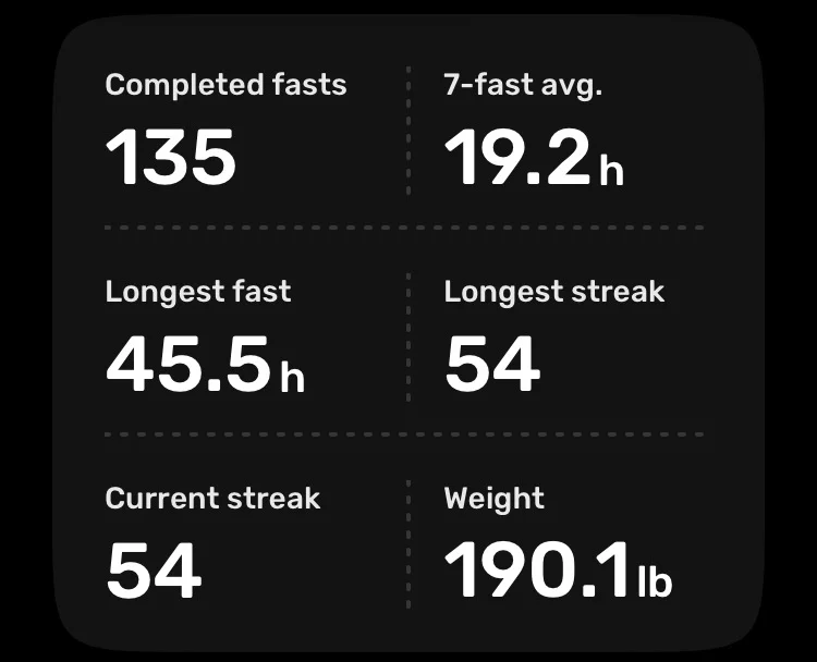 Seeing my fasting streak, my fasting average, and all the other metrics surrounding my progress, I got a renewed sense of faith that I could cross the finish line without eating.